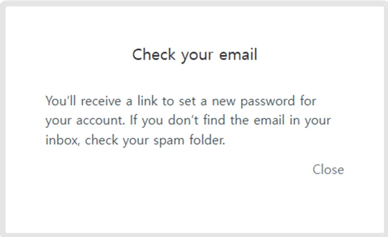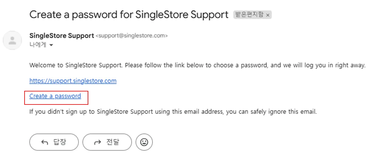 이메일을 확인하여, Create a password 를 클릭하십시오. 이메일을 받지 못하였다면, 스팸 폴더를 확인하십시오.