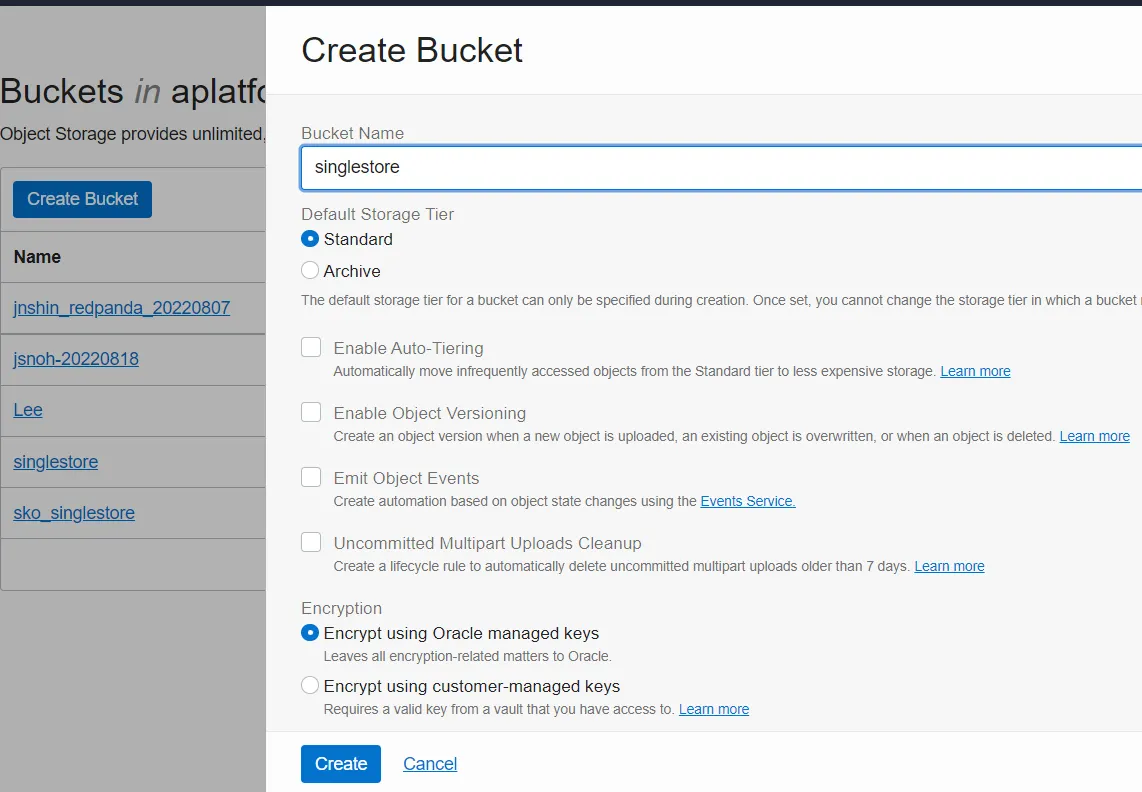 예제를 통해, OCI object storage에 USD(Unlimited Storage Database)를 생성하는 방법에 대해 알아본다.
