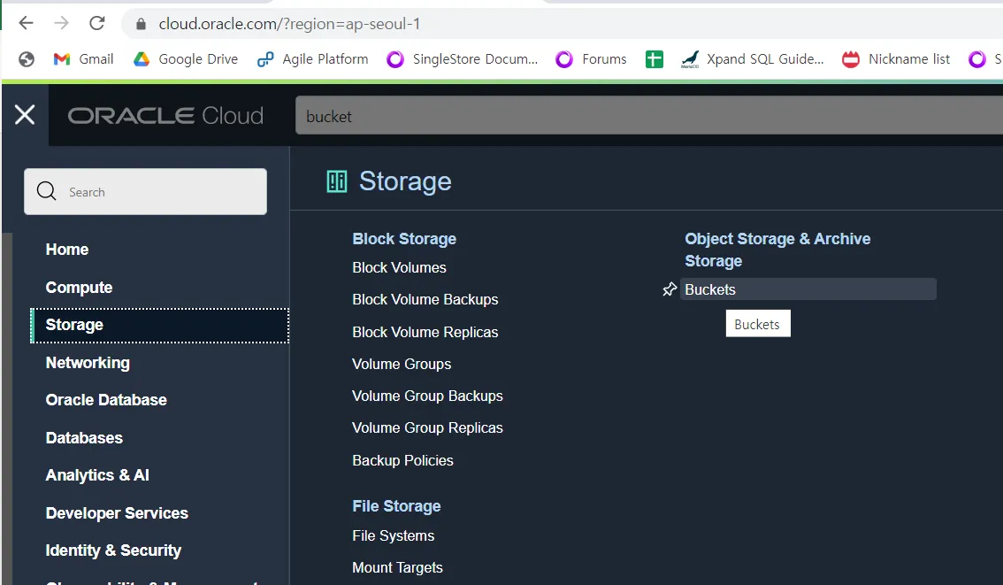Storage > Object Storage & Archive Storage > Buckets 으로 이동한다.
