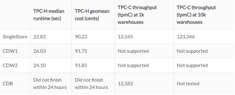 R1) Full Benchmark Result : https://www.singlestore.com/blog/tpc-benchmarking-results/