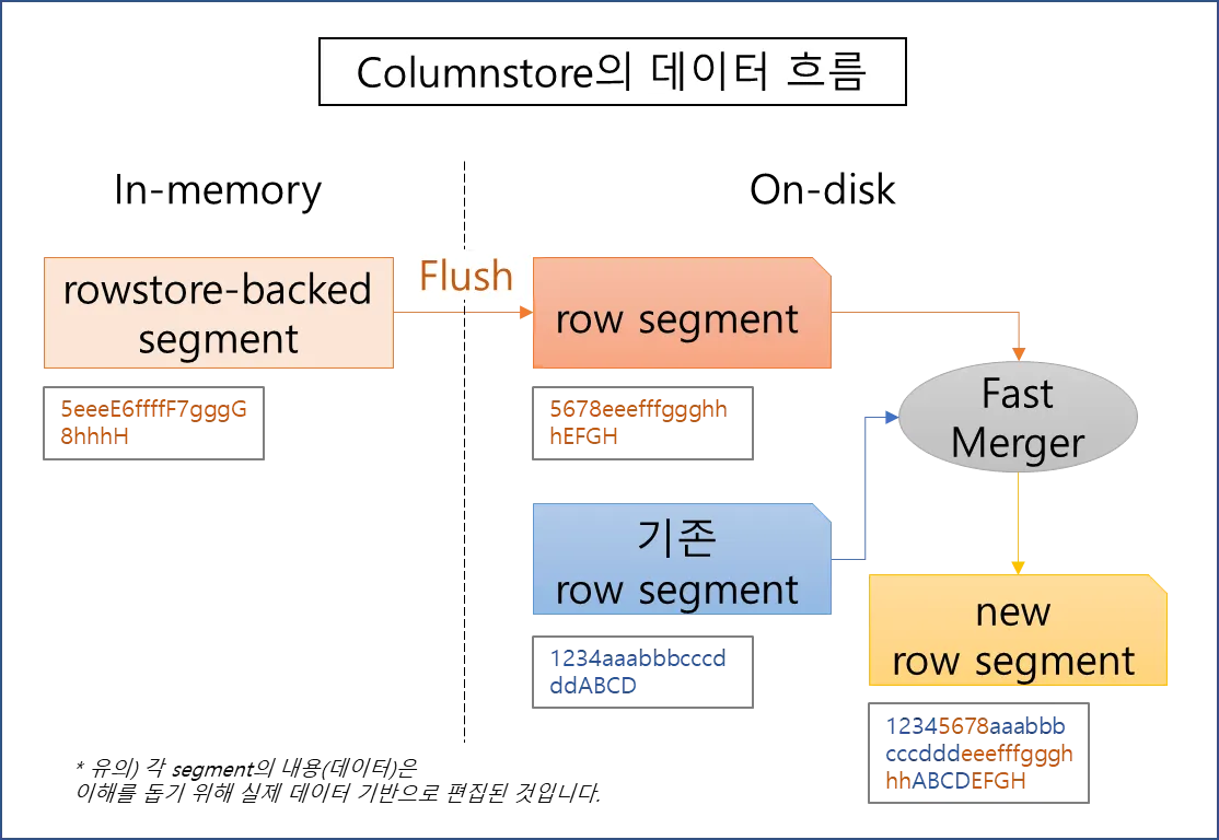 rowstore-backed segment가 디스크로 flush될때는 segment(파일)가 새롭게 만들어집니다.