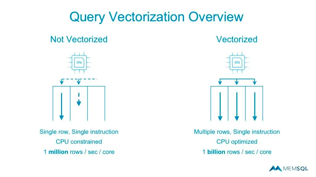 SingleStoreDB는 집계(Aggregation) 및 필터링(Filtering) 성능을 높이기 위해 Intel 의 SSE4.2 및 AVX2 명령어세트를 이용해 SIMD(Single Instruction Multiple Data) 를 구현하고 있습니다.
