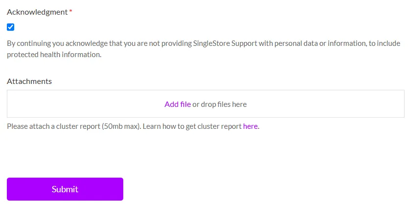 P1 또는 P2 선택시, SingleStore 본사 기술 지원팀에서 연락 및 전화가 올 수 있습니다.