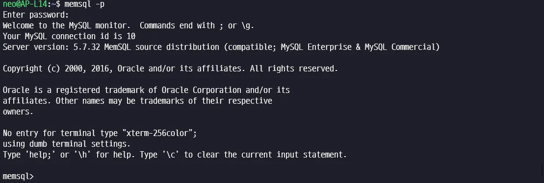 memsql -p 를 이용해 SingleStore Cluster 에 접속합니다.