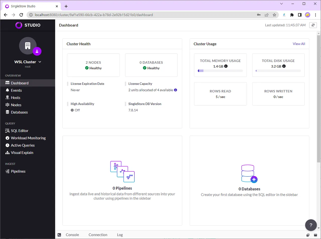 이제 SingleStore Studio 도 사용할 수 있습니다.