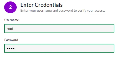 Enter Credentials 화면에서 Username : root, Password : <비밀번호>를 입력합니다.