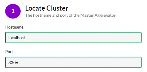 Locate Cluster 항목에 Hostname : localhost, Port 3306 을 입력합니다.